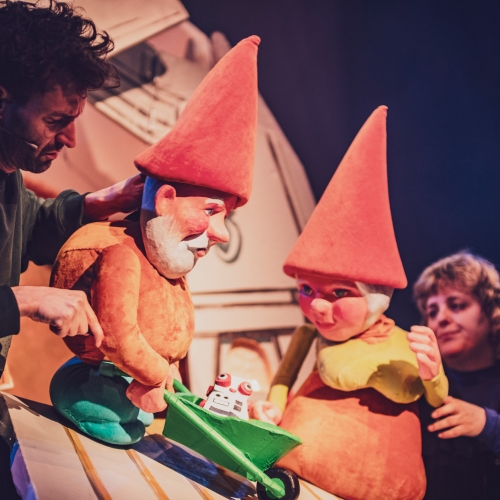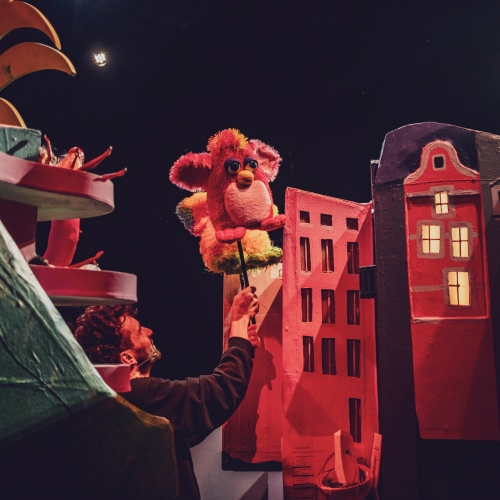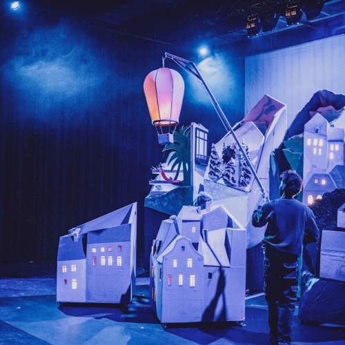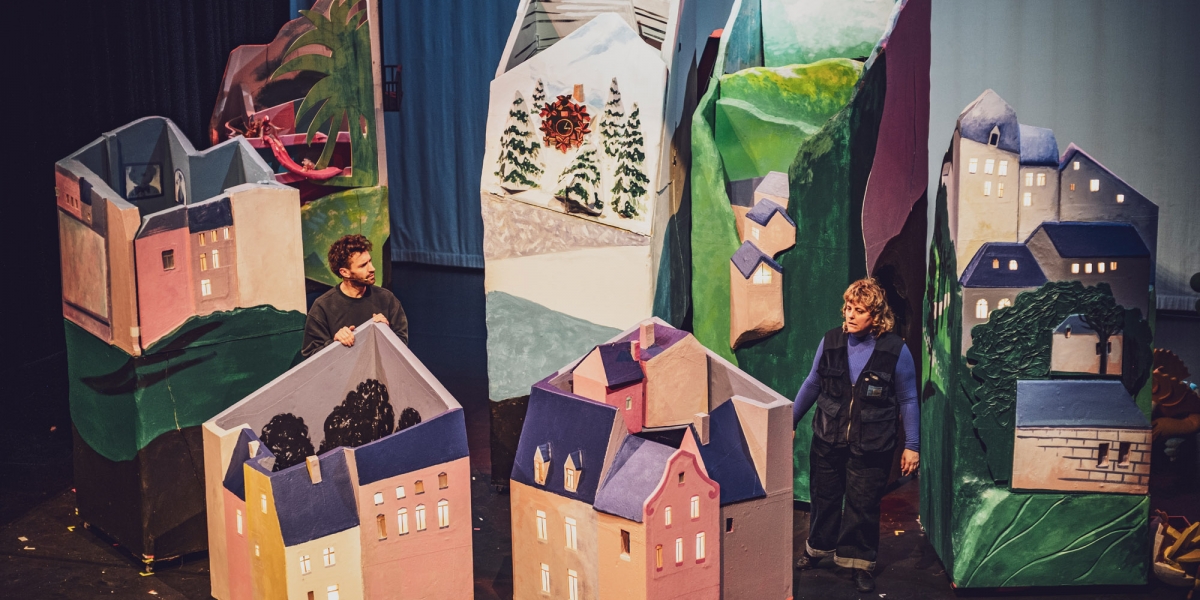 AMAI SPECIAAL CHAPEAU zet de deuren open naar een wereld vol buitengewone gezinsvormen. Met (zelfgemaakt) speelgoed en een landschap dat lijkt op een reuze-uitklapboek, bouwen twee volwassen mensen de wereld en het mensbeeld waarin ze willen dat hun dochter opgroeit.